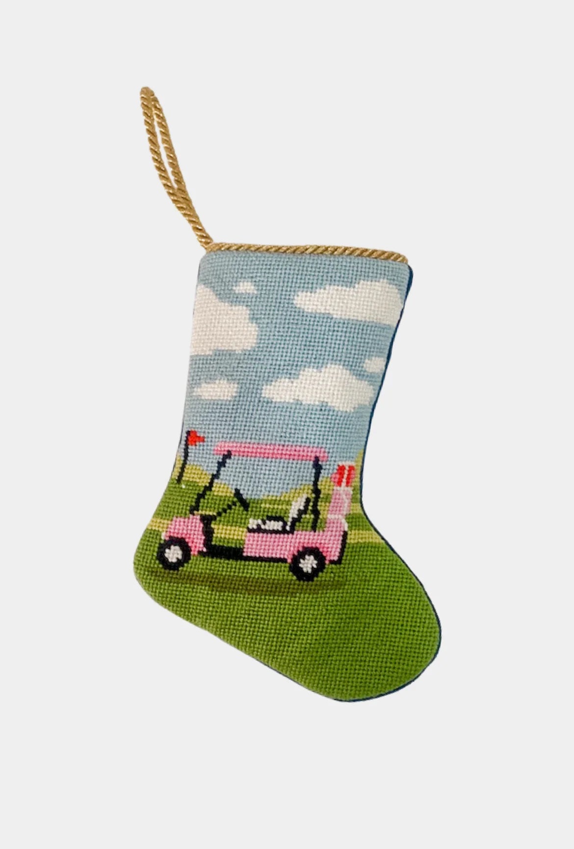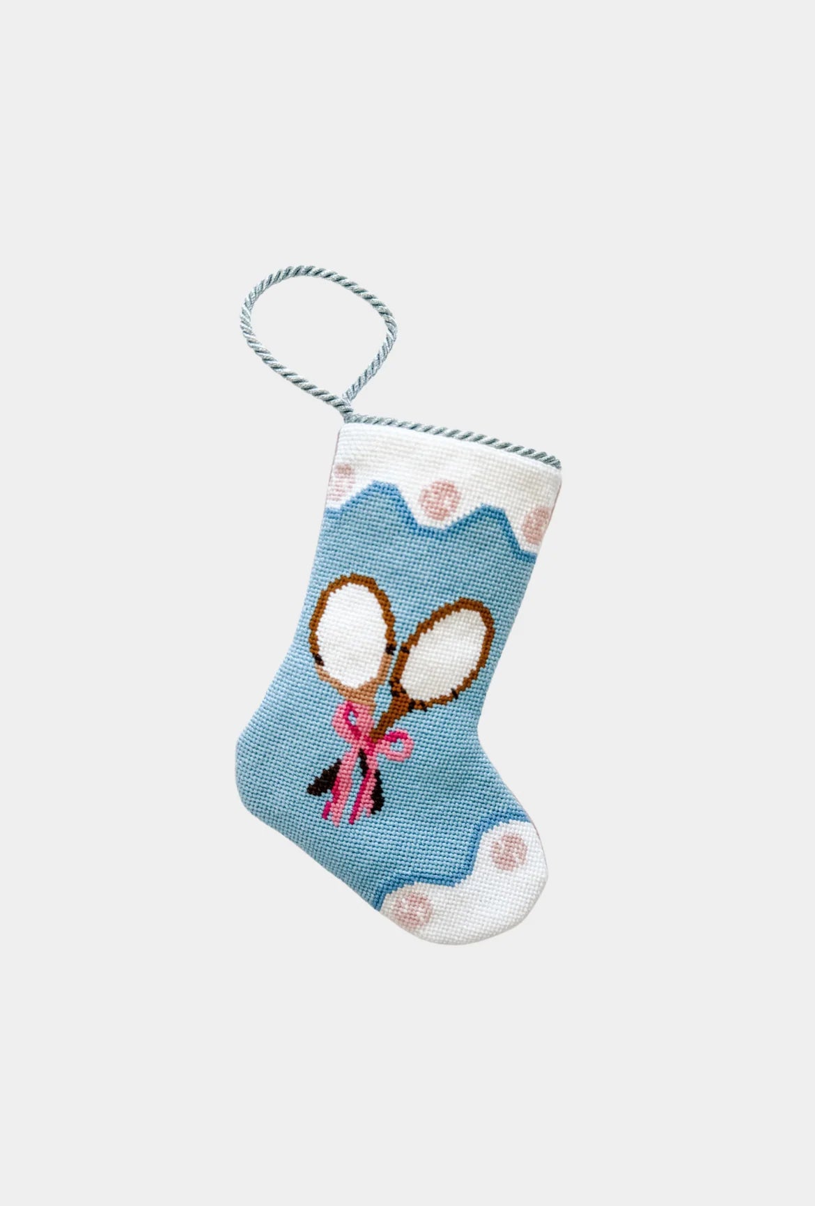 Each heirloom quality Bauble Stocking is hand-stitched needlepoint with cotton threads and oh-so-soft velvet backing. From start to finish, the attention to precise detail makes this a very special gift. 6" long, 4.25" wide.