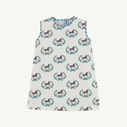 Annie Apron Dress - Highland Horses w/ Barnsley Blue Gingham
