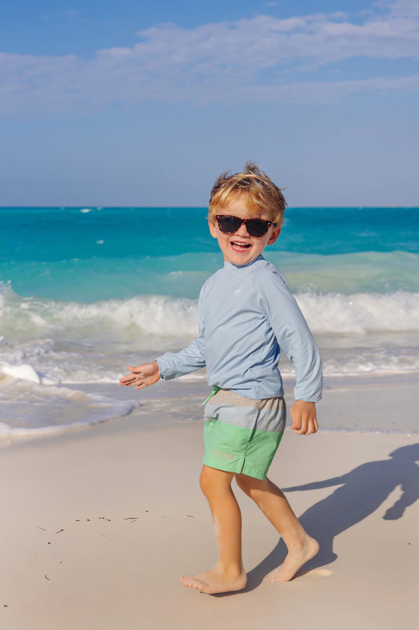 Our Country Club Colorblock Trunks are perfect for a day at the pool or sunbathing by the sea! Featured in Sandy Springs Stone, Buckhead Blue, & Grace Bay Green with Worth Avenue White Stork, these trunks are just what your little boy needs for a day of fun in the sun.