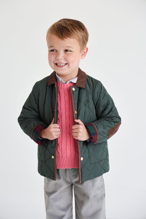 When the days grow cooler and the leaves start to fall, our Crawford Crewneck will ensure that your little one is cozy + stylish. In our Nantucket Red Cable Knit, your little one will be ready for everything from apple picking to attending a Fall festival.
