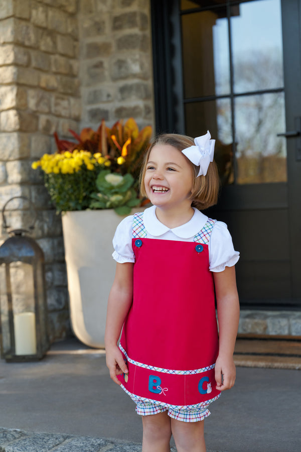 Our Jillian Jumper Set in Red with Kindness Wins Windowpane is an exciting addition to our back-to-school collection and we know you will adore it as much as we do! She will look as cute as a button in this set.