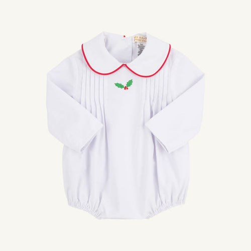 Boone Bubble - White w/ Richmond Red & Holly Embroidery - Broadcloth - Long Sleeves
